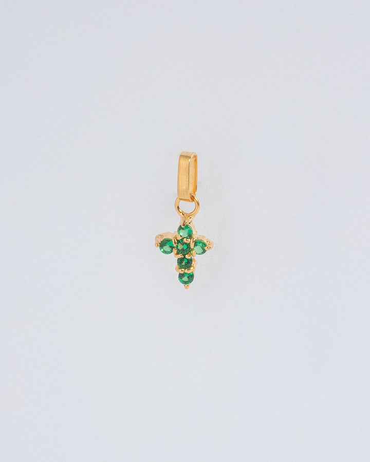 Un detalle delicado que ilumina cualquier look. Este dije está elaborado en oro de 18 quilates y adornado con circones blancos de alta pureza, cuidadosamente engastados para crear un brillo sutil y sofisticado. Su diseño en forma de cruz estilizada aporta un toque clásico y atemporal, ideal para usar solo o combinar con otras cadenas y dijes.
