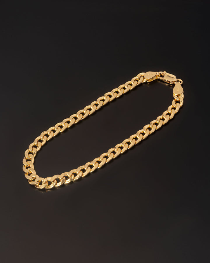 Fabricada en oro amarillo italiano de 18 quilates, su diseño de eslabones tipo gourmette refleja un equilibrio perfecto entre potencia y sofisticación. Cada enlace ha sido pulido con precisión para lograr un brillo profundo y un acabado impecable.